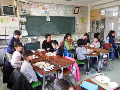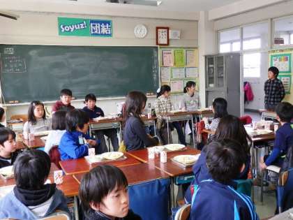 6年生を送る会のに予定をしていた縦割り給食。インフルエンザもようやくおさまり始めたのでようやく実施できました。いつもはカレーライスですが、今日はドリア風ライス。6年生は何となく遠慮しがち食べていました。でも、5年生をはじめ、低学年のみんなのありがとうの気持ちが伝わりました。