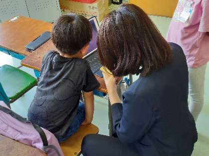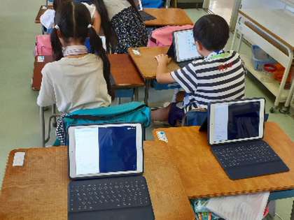 はじめは、ログインすることに、苦労しましたが、先生の話をしっかり聞いてログインできました。次に、写真を撮影し、ロイロノートにカードを作りました。さらに、カードにすきな絵や文字を書く練習をしました。今後も段々とiPadの操作方法に慣れ、様々な場面で使用できるようになります。