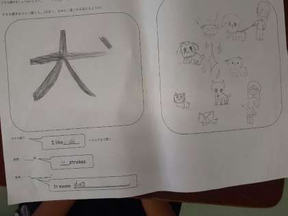 3年生の外国語活動では、好きな漢字、その漢字の画数、漢字の意味を英語でみんなに紹介する活動を行いました。I like ~.It's数字stroke .It means~.の構文を使って、みんなに上手に紹介していました。一人一人の個性が表れていて、みんなが興味をもって参加できる素晴らしい活動となりました。