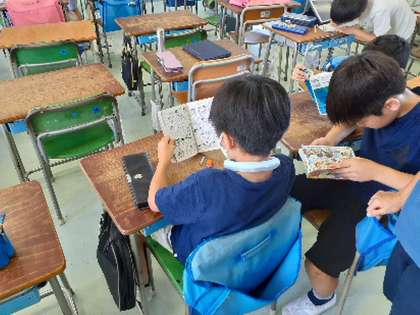 本日も、気温がとても高いです。熱中症予防のため休み時間の外遊びは、できませんでした。4年生は、本を読んだり、クイズを出し合ったりしていました。また、iPadを使ってタイピング練習をしているのですが、タイピングの速度がとても速くてびっくりしました。
