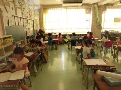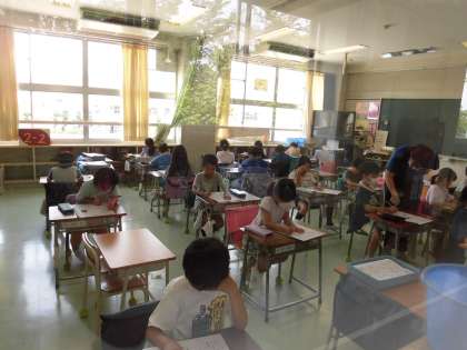 1学期も残り3日となりました。今日は多くのクラスでまとめのテストが行われました。4月に新しい学年に進級してから3か月の間に、たくさんのことを学んできました。これまでに身につけた力を、精いっぱい発揮しようという気持ちが真剣な表情に表れていました。いつもは、活発に発言する声や、仲間と話し合いを進める声が聞こえる教室も、静まりかえっていました。