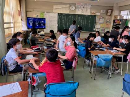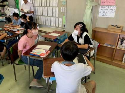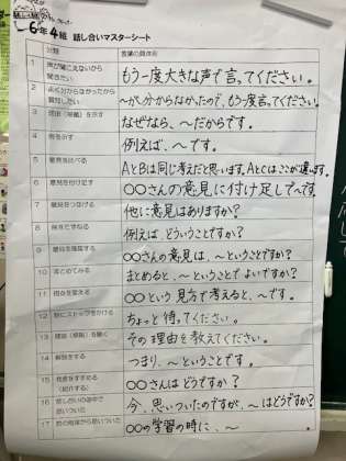 6年4組の国語の学習の様子です。「聞いて、考えを深めよう」という単元で、話合いをする時の望ましい態度、心構えについて考えました。友達と話し合う機会は、自分一人では気が付かなかった考えに出会える素晴らしい機会です。自分の意見をよりよくする、考えを出し合ってよりよい考えを創り出すためにも、相手の意見をよく聞いて、まずは受け入れることが大切だと考えました。そのことをめあてに、「明正小まつりでどんなコーナーを作るか」というテーマで小グループでの話合いを行いました。受け入れていることを態度で示すために相槌を打ったり、声に出して反応したりしながら友達の意見を尊重している姿がたくさん見られました。話合いマスターシートを基に、意見をつなげたり、更に詳しく質問したりするときの話し方も意識して話し合いました。様々な場面で生かせる学習をしました。