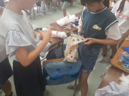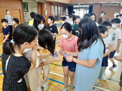5年生の教室を覗くと、何やら布切れを使って製作活動をしていました。話を聞くと6年生の日光林間学園に向けて6年生一人一人に手渡すてるてる坊主のお守りを作っているとのことでした。みんな頑張って作っていました。4時間目、6年生が体育館で日光林間学園に向けて集会を開いているところに、5年生がかけつけてるてる坊主を手渡しました。6年生は照れた様子でしたがうれしそうに受け取っていました。代表児童のお礼の挨拶に合わせて、6年生全員でありがとうを伝えました。高学年の絆が一層強まるすてきな一日になりました。