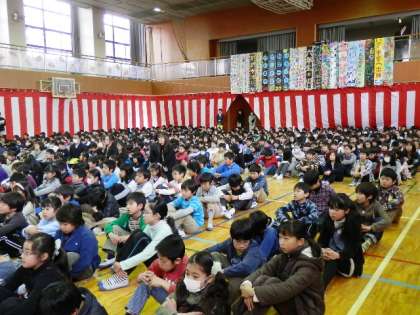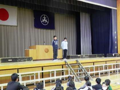 明日に卒業式を控え、全学年がそろう最後の式を行いました。