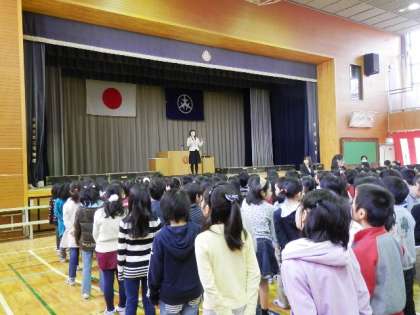 各学級の代表に修了証を渡しました。全員の通知表を読み、3学期にそれぞれが努力したところが目に浮かぶようでした。