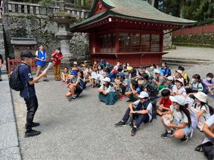 東照宮に到着し、グループ毎に見学を始めました。最近は夕立が多かったのですが、今日降っていません。