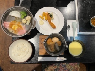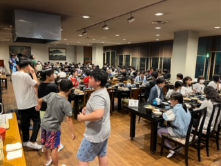1日目の夕食です。「お腹が空いた!」という声があちらこちらから聞こえてきました。とても美味しそうです。