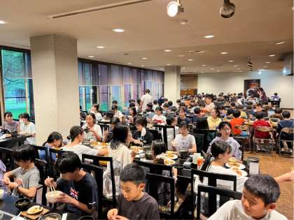 2日目の夕食です。ハイキングでたくさん歩いてお腹が空いている子が多いです。