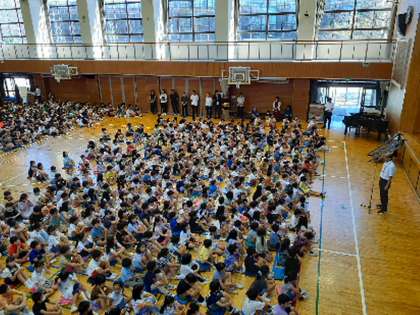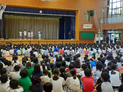 長い夏休みが終わり、今日から2学期のスタートです。元気な子どもたちが学校に帰ってきてほっとしました。体育館に全校児童を集めて始業式を行いました。校長から、今日は関東大震災から100年目の防災の日であること。常日頃から災害への備えをすることの大切さを話しました。また、代表児童の言葉は、4年生が務めました。1学期の自分の姿から、更に成長できる2学期にするために、一人一人がよく考えて全校児童に向けて発表しました。みんなの夏休み気分を切り替える素晴らしい発表をしてくれました。