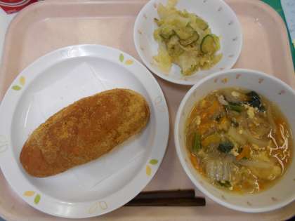 きなこ揚げパン 野菜の中華風味 白菜と春雨のスープ 牛乳