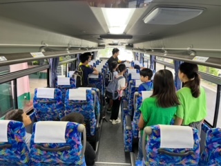 バスが出発しました。高速道路に入ったら、バスレクがはじまる予定です。