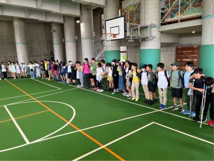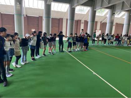 開室式の後に、全員で円陣を組み、掛け声をかけましました。「川場移動教室、全力で楽しむぞ!」「オー!!」とても素敵な取組でした。