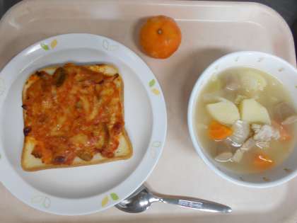 ピザトースト ポトフ 冷凍みかん 牛乳