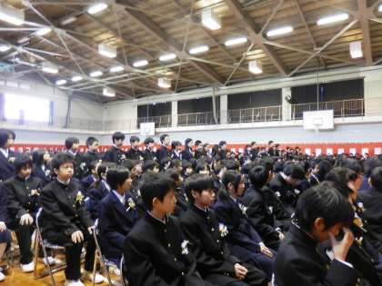 砧中学校の入学式がありました。つい2週間ほど前に卒業したばかりでしたが、制服を着ると大人びた感じがします。砧の学び舎の小学校を代表して山野小学校の溝口先生がお祝いの言葉を送りました。