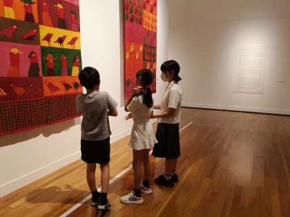鑑賞していて気付いたのですが、この大きな作品の前で多くの児童が立ち止まり長い時間、見入っていました。色鮮やかで迫力のある作品だからだと思います。是非、世田谷美術館の実物を見てほしいと思います。最後に、お礼をしっかりと言って無事に帰ってくることができました。