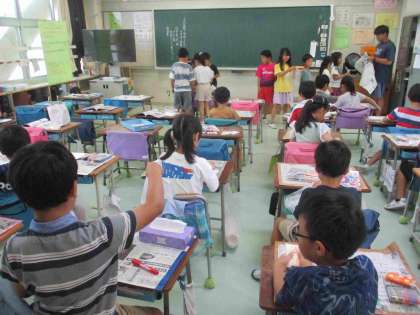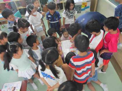 2年生が図工で、ティシュペーパーを使って模様をつくりました。ティシュペーパーを折って、マジックで点や線を付けます。開いてみると、思いがけない模様ができあがっています。友達と声を掛け合いながら、楽しそうに活動していました。