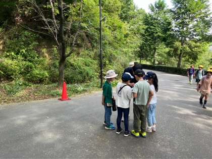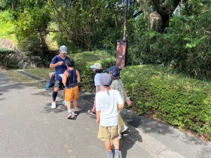 グループ活動がはじまりました。グループで、「枡形展望台」を目指します。チェックポイントではスタンプを押してもらいます。出発して、すぐに座って休憩しているグループもありました。