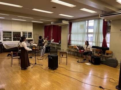 MSBCのみなさんが、明正小まつりのために練習をしていました。約10年前の卒業生のみなさんです。(学校支援コーディネーターの方はもう少し前の卒業生です。) 歌声もすばらしくゾクゾクッとしました。本番が楽しみです。