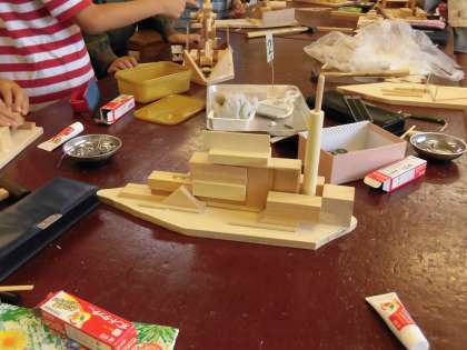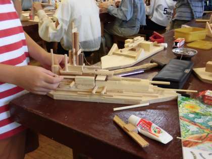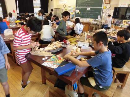 5年生の図工では、引き続き「GO!木の船」の作製に取り組んでいます。今日は、材料の組み合わせを工夫してパーツを組み合わせてボンドなどで接着していきました。大きさも形も違う様々なパーツを縦・横・ななめ、いろいろな向きに合わせてみると、アイディアも次々とひらめいているようでした。「これいい!」と納得できるアイディアに、笑顔もあふれていました。自分だけの船の完成が近づいてきています。