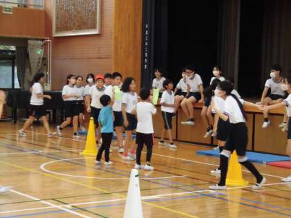 今日は1−4と6−4が合同で「わくわくカップ」と題した交流会を開催しました。1年生と6年生が仲良くなれるように、6年生が企画から準備、当日の進行を担当しました。