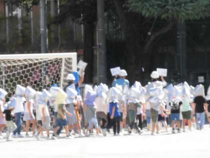 他の学年も、校舎から出て里山に向かう間、列の間をあけず「おかしも」を守り、スムーズな移動をしていました。