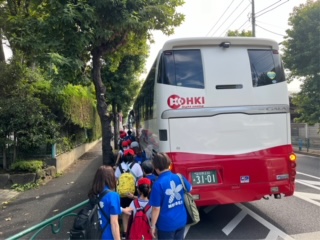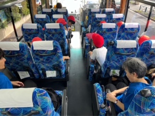 ひまわり学級のみんなで連合運動会に出発しました。バスの中は、運動会の歌を歌って大盛り上がりです。みんなの活躍が期待できます!歌を一回歌ったら、もうすぐ総合運動場です。