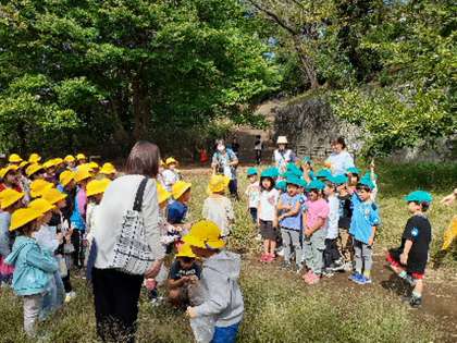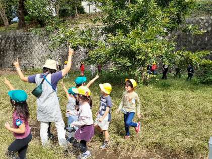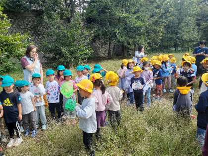 里山で散歩中の喜多見保育園の園児と遭遇しました。挨拶をすると、「一緒にあそびたい!」と1年生から声があがりました。一緒に秋探しをしたり、鬼遊びをしたりして短い時間でしたが楽しく遊びました。お別れの時には園児から「今度、学校に行ってもいいですか?」と誘われました。1年生も「いいですよ!」とうれしそうに返事をしました。交流がスタートしました。お互い、また会える日を待ち遠しそうにしていました。