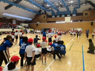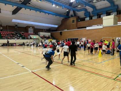 「ボール運び」は力を合わせてボールを運びました。スピードも速かったです。