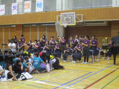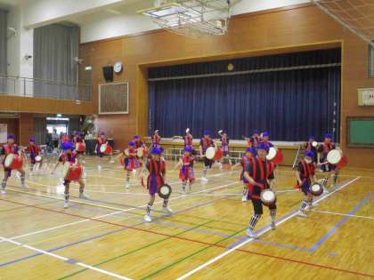 午後の部では、砧中からボランティアの中学生も駆けつけてくれました。舞台発表では、ハッピーエイサーズの練習を重ねてきた演舞を見せてもらったり、砧中金管バンドの迫力ある演奏を聞かせてもらったりしました。