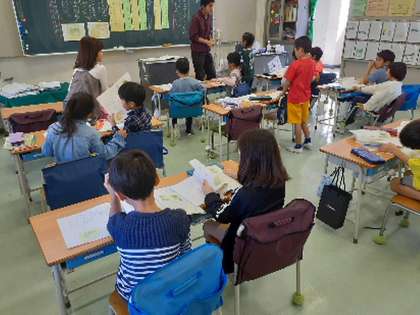 2年生の国語では「お手紙」の物語文の学習を進めています。お手紙をもらったことがないがまくん、そんながまくんにお手紙を書いて喜ばせてあげようとするかえるくんの気持ちを想像しながら読み進めています。それぞれの会話文から気持ちを想像したことを発表し合い、その意見を基に音読の仕方を工夫しました。この時間の最後にはなりきりタイムという時間が設けられ、登場人物になりきって音読をしました。場面の様子に合った上手な音読が、みんなできていました。