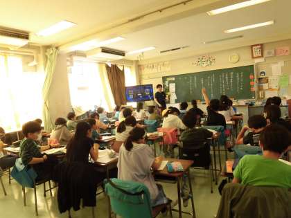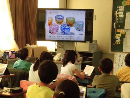 「世界にほこる和紙」の学習が始まりました。伝統工芸の良さを理解し、内容を要約したリーフレットを作成することを目標として学習を進めます。まずは、伝統工芸とはどんなものかをタブレットで調べました。江戸切子や寄せ木細工など、見つけたものを発表しあいました。