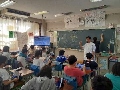 ひまわり学級の担任が6年4組で障害理解教育の授業をしました。テーマは「支えるってどういうこと?」でした。ある場面を提示して考えさせました。1年生のお手伝いをしに行った6年生。ある1年生は、給食を載せたおぼんを運ぶのが苦手で、こぼしてしまうこともあります。あなたならどうしますか?という場面です。「代わりに持ってあげる」「最初はもってあげるけど、少しずつ自分でできるように教えてあげる」「こつを教えて自分でできるようにする」など様々な意見が出ました。その中で「大事なのはその人にとって何がいいのかを考えること」という意見も出ました。教員はその考えを価値付けし、性別、体格、得手不得手など誰一人同じ人はいないこと、その上で大事なのは、誰もが自分らしく生きていける社会をみんなでつくっていくことだということを話しました。これからの学校生活、その先の人生において大切なテーマをじっくりと考えることができた時間となりました。