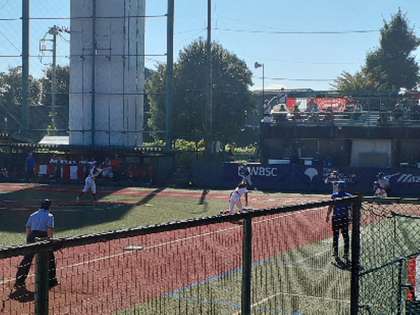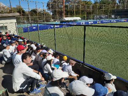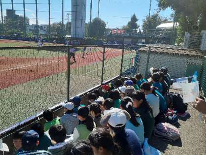 試合が始まりました。一人一人に配られた応援フラッグを手に子どもたちも一生懸命応援しています。
