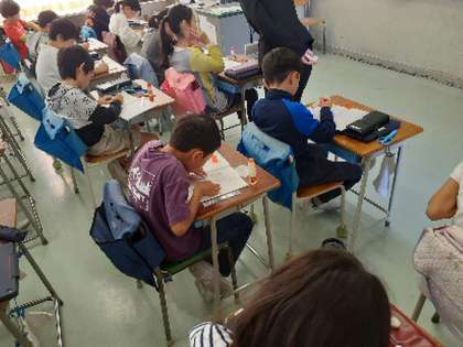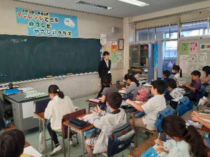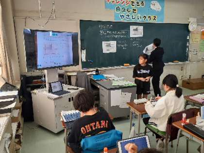 10月始めから4年5組の学級経営を中心に教育実習に取り組んできた実習生の研究授業を行いました。算数「面積」の授業で、今日は複合図形の面積の求め方を考える内容でした。いろいろな方法が思い付く教材のよさを存分に生かして、たくさんの考えを引き出すことができました。面積の学習の楽しさを味わわせつつ、時間内に概ね指導する内容を終えることができ、初めての研究授業とは思えない堂々とした指導でした。たくさんの教員が参観に訪れ、今後、この授業についてや教育実習全体を振り返っての指導助言を行っていきます。