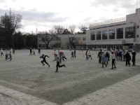 今朝は児童集会で環境委員会主催の集会を行いました。今、集会委員会は「服のちからプロジェクト」への協力活動を行っています。その活動で現時点までに集まっている子供服を体育館に並べて、全校児童に活動をPRしました。目標は3000枚の子供服です。現在は1300枚。11月2日までの回収期限に向けて、力のこもった呼び掛けを集会で行いました。毎年、このプロジェクトへの協力を通して、戦争やそれに伴う難民が存在する事実に向き合い、考える機会になっています。