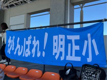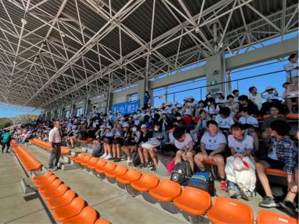 6年生の連合運動会が大蔵総合運動場で始まります。最高の天気に恵まれました。開会式が終わり、競技が始まります。