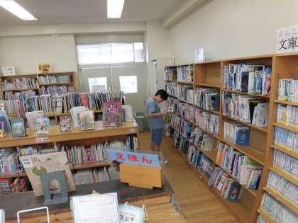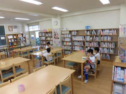 明正小は休み時間に図書館を利用する児童が多いそうです。低学年の子供でも、自分の興味のある本の場所をしっかりわかっていることに驚いたそうです。