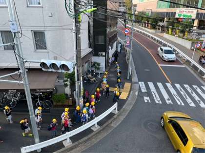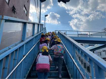 がんばって歩いています。もうすぐ学校です。