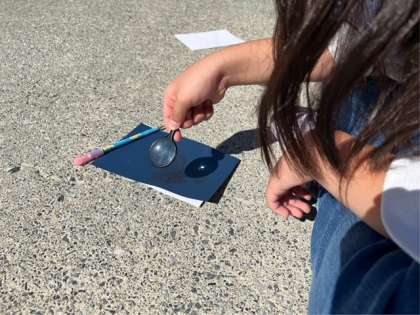 3年生は理科で太陽の光の性質について調べる学習をしています。鏡や虫メガネを使って光を集めてみました。小さな虫メガネでも光を集めることで煙が出てくるくらい温めることができました。黒い紙と白い紙での違いも見つけることができました。