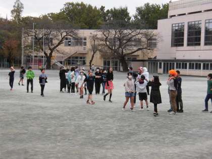 今日は、多くのクラスでハロウィンパーティーが開催されました。仮装して校庭でドロケイヤドッヂボールをして遊ぶクラスもありました。友だちや先生と仮装して校庭を思いっ切り走り回り、楽しい時間を過ごしました。クラスの仲間で考えたハロウィンパーティーで、より親睦を深めることができました。