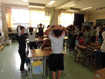 3年生の日本語では、百人一首の学習をしています。今日はまず教科書に掲載されている百人一首をみんなで声を合わせ、大きな声で音読しました。歌人の中にはとても長い名前があり、「27文字の名前!すごーい!」とびっくりする場面もありました。上の句・下の句といった百人一首の構成や特徴もしっかり理解が進んでいます。授業の後半には、百人一首かるたに挑戦です。班に分かれて札を並べ、読み手の声にじっと耳を傾けています。集中して真剣に取り組むまなざしと、笑顔で楽しむ姿が多くみられました。