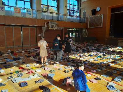 今日の委員会活動では、服のチカラプロジェクトの取組で環境委員会が頑張って集めた子供服の枚数を数えました。体育館のフロア一面に服が並びました。総数は2058枚、過去最高記録です。委員会の子どもたちは達成感に満ちていました。今後この成果を全校児童に報告していきます。