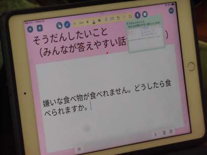 「相談にのってください」の単元の学習が始まっています。学校のことや今困っていること、みんなからアドバイスをもらいたいことなどから、1つを選びます。相談を聞いたクラスのみんなが答えやすい話題にすることを約束しました。