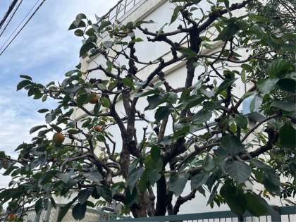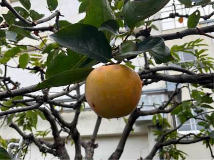ついこの前までは、半袖でも過ごせるような日がありましたが、秋を通り越して冬になってしまったようです。ポケットに手を入れたままの子も見られるようになりました。転んだ時に危険なので、寒ければ手袋をするよう促しています。正門横の柿の木には、大きな柿が実っています。