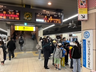ひまわり学級が校外学習で上野動物園に向かって出発しました。欠席無しで、元気一杯に向かっています。電車は混んでいますが、静かにマナーを守って乗っています。高学年の子が声をかけたり手を差し伸べたりしています。頼りになります。