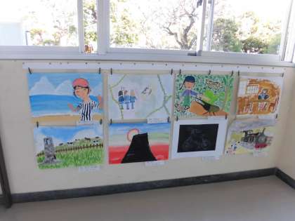 校内の廊下の壁には、子どもたちの作品をたくさん展示しています。今は、夏休みの絵画コンクールに参加した子どもたちの絵画や、4年生の図工作品「わくわくアート」が展示されています。それぞれの作品には、作品の題名や説明が記載されており、工夫した点や特に見てほしい点などがとても丁寧に記載された図工作品カードが添えられています。カラフルな素敵な作品がずらりと並び、廊下や階段もとても明るくなり、まるで美術館のようです。ひとつひとつをじっくりと鑑賞したくなります。学校にお越しの際は、ぜひご鑑賞ください。