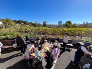 待ちに待ったお弁当です。とてもおいしそうで、みんな、うれしそうです。ご準備くださりありがとうございます。日があたり、暖かくなってきました。