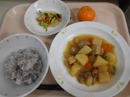 ゆかりごはん 肉じゃがうま煮 煮びたし みかん 牛乳