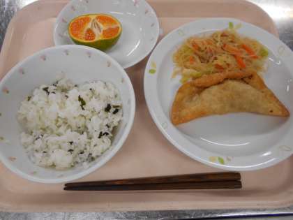 わかめごはん ジャンボぎょうざ 春雨サラダ はやか 牛乳