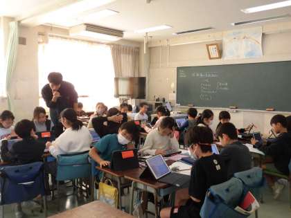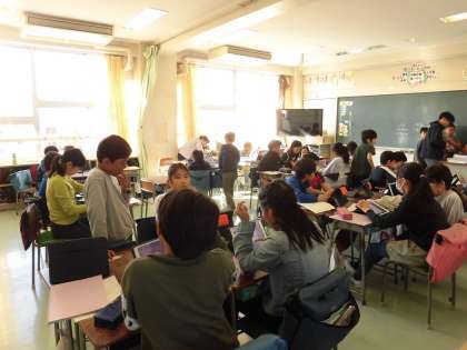4年生の総合の授業では「環境大作戦」として、環境保全への取り組みについて各クラスでテーマ・目標を決めて活動が始まっています。各クラスで「地域での取り組み」「企業の取り組み」「ゴミ問題への取り組み」「資源回収の取り組み」「給食完食への取り組み」といったテーマを掲げました。例えば、「資源回収を行っている団体は?どうやって回収してるの?」といったことをiPadを活用して調査したり、「給食を完食するために給食の魅力を伝えたい!どうしたらよい?給食がなかったら?」といったことをグループで話し合いをし、様々な意見やアイディアが出てきました。これからどんどん深めていきます。